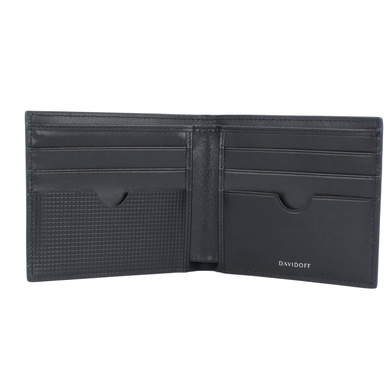 Luksusowy portfel od Davidoff wykonany z miękkiej skóry cielęcej z filigranowym tłoczeniem "Clou de Paris". Portfel zachwyca nowoczesnym, eleganckim designem i wysoką jakością wykonania oraz oferuje mnóstwo miejsca do przechowywania banknotów i kart kredytowych. Wierny towarzysz dla świadomego swojego stylu mężczyzny.