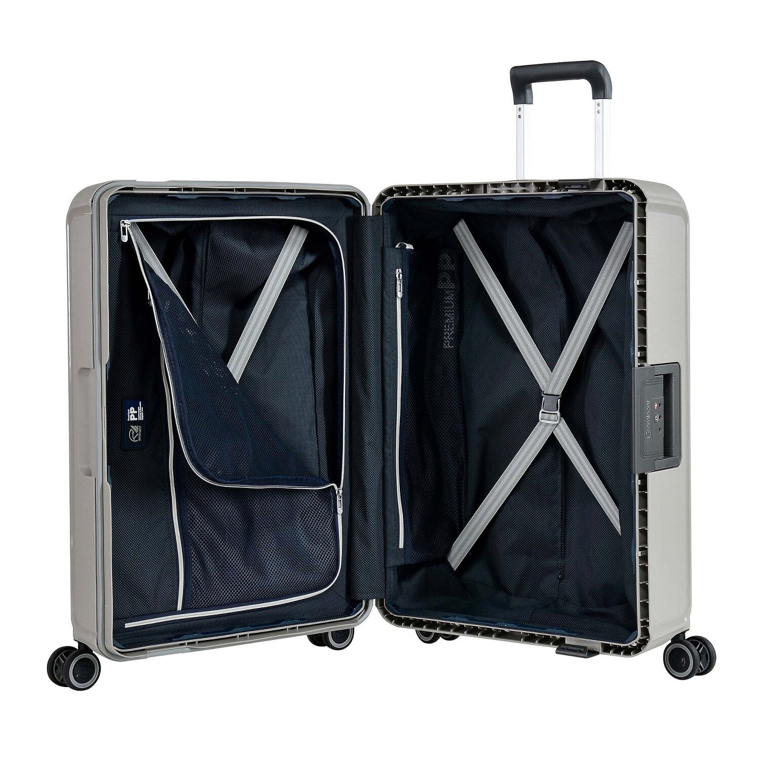 - Sprzęt: Z rączką teleskopową wysuwaną, Przedział na pranie, Pasy wewnętrzne mocujące, Kieszeń siatkowa