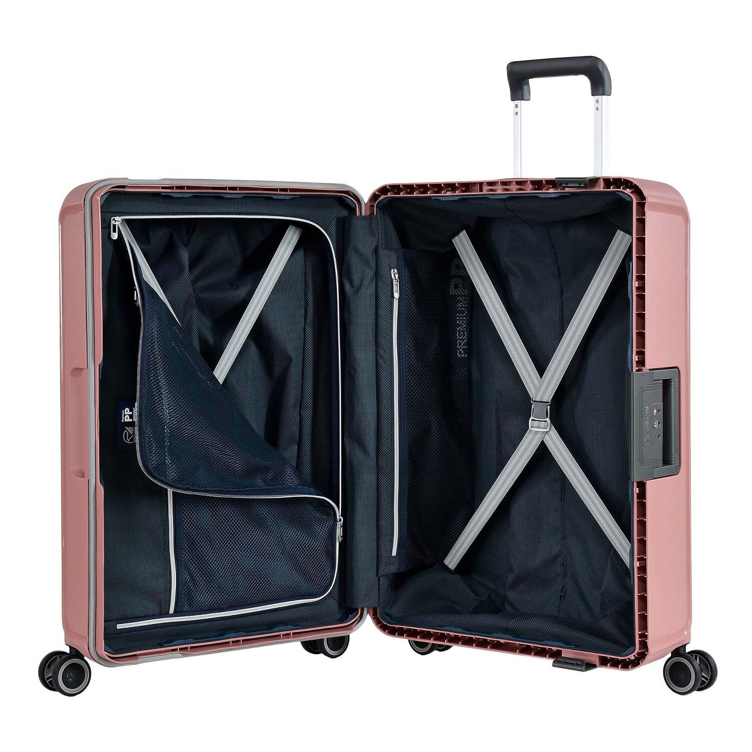 - Sprzęt: Z rączką teleskopową wysuwaną, Przedział na pranie, Pasy wewnętrzne mocujące, Kieszeń siatkowa