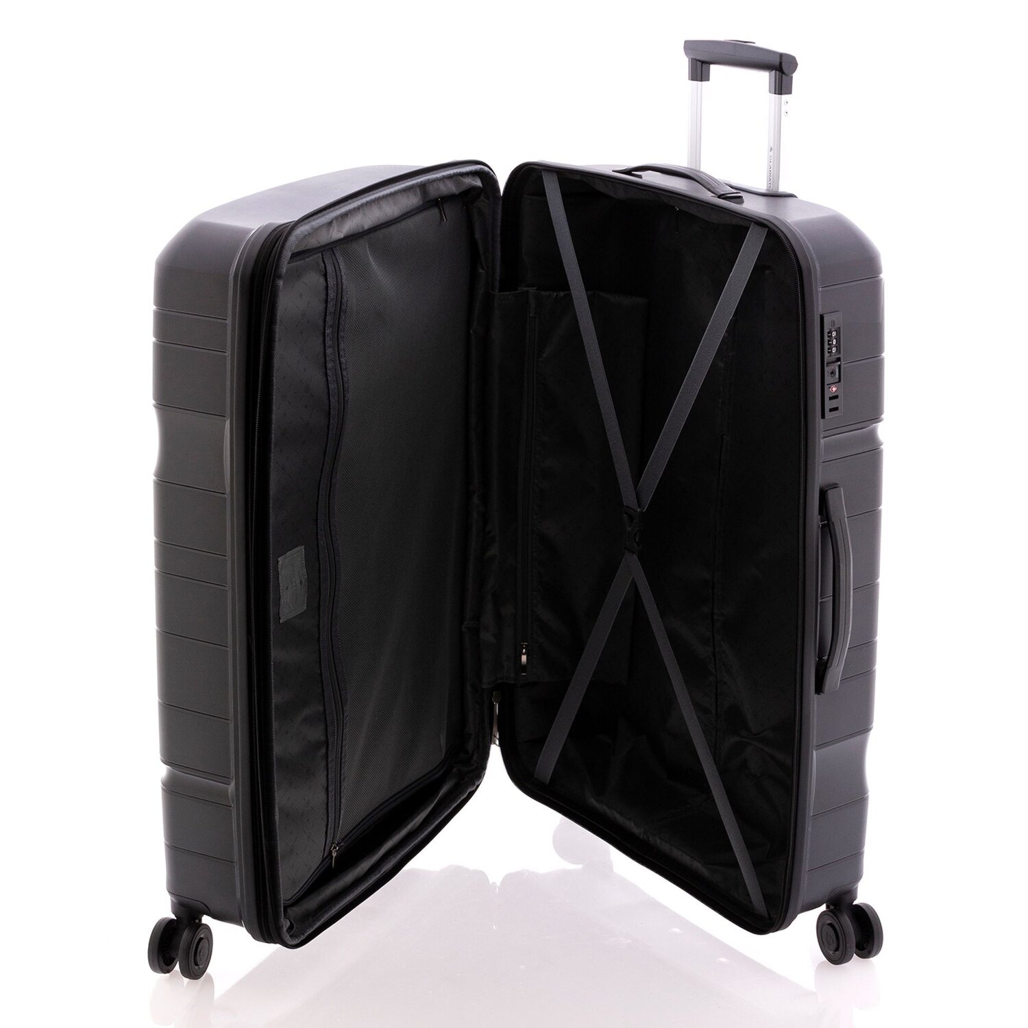 - Sprzęt: Z rączką teleskopową wysuwaną, Rozciągniecia fałdy, Przedział na pranie, Pasy wewnętrzne mocujące, Kieszeń na suwak