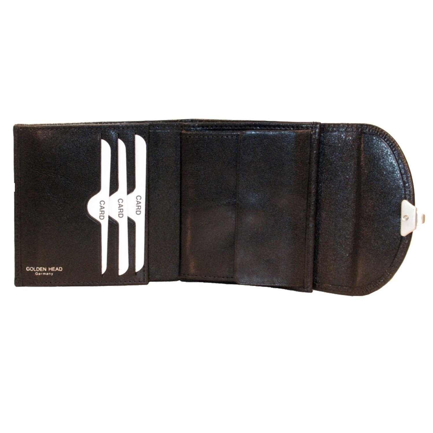 Piękny portfel Golden Head wykonany ze szlachetnej ręcznie barwionej pełnoziarnistej skóry bydlęcej. Z przegródkami na monety, banknoty i karty. Elegancki zamek otwierany jest poprzez naciśnięcie na środku.