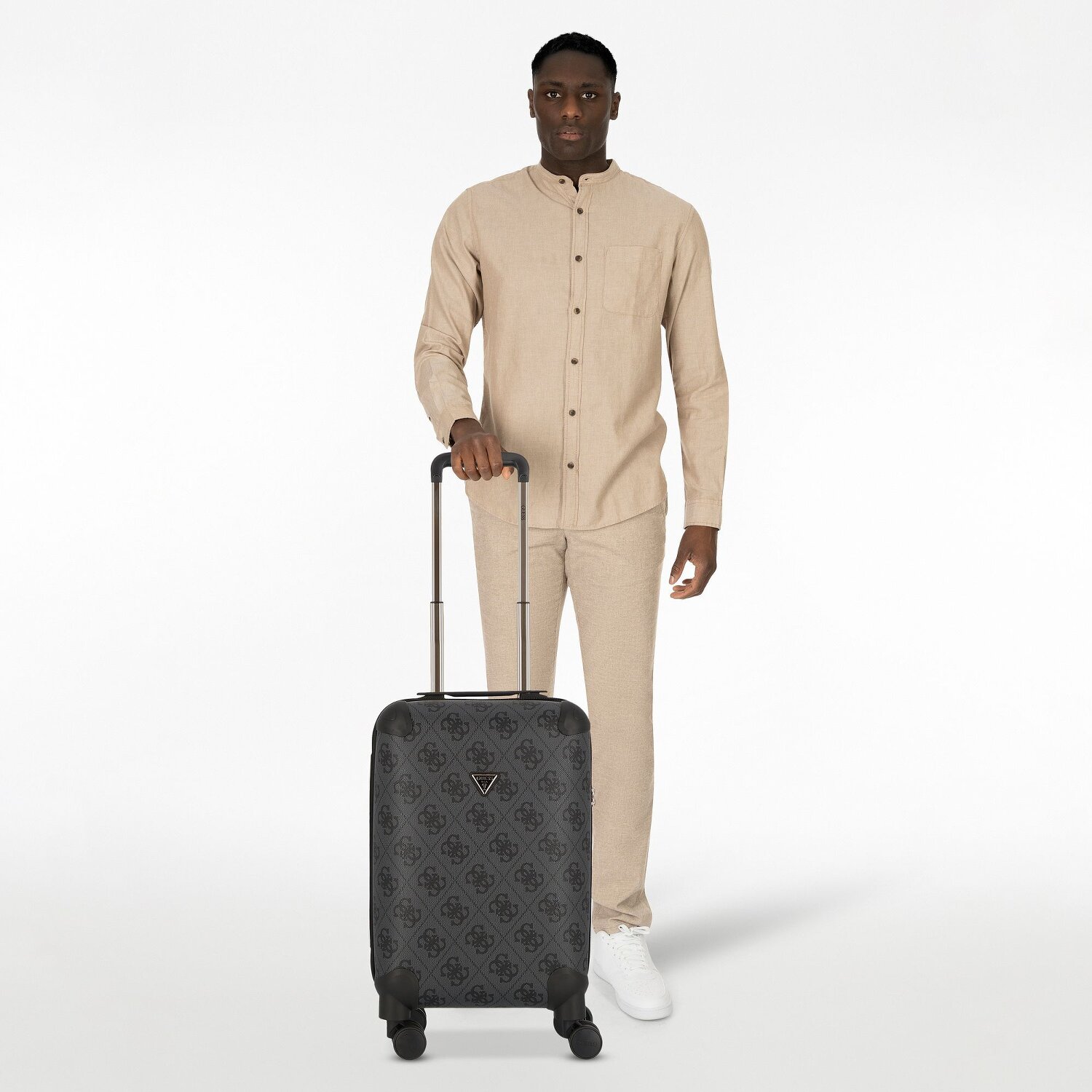 Lataj stylowo i efektywnie z bagażem kabinowym Guess Berta! Ta twarda walizka na czterech kółkach na nowo definiuje podróżowanie. Wnętrze ma przegrodę na zamek błyskawiczny i oddzielną przegrodę na pranie. Zamykana rączka i pasek na ramię zapewniają mobilność bez wysiłku. Szczególną atrakcją jest uchwyt do przenoszenia, który ułatwia transport. Wykonany z wytrzymałego i trwałego poliuretanu, ten bagaż jest wytrzymały i będzie Ci towarzyszył podczas wielu podróży. Zintegrowany zamek TSA również niezawodnie chroni bagaż. Odkryj zalety wygodnego podróżowania z Guess już teraz!