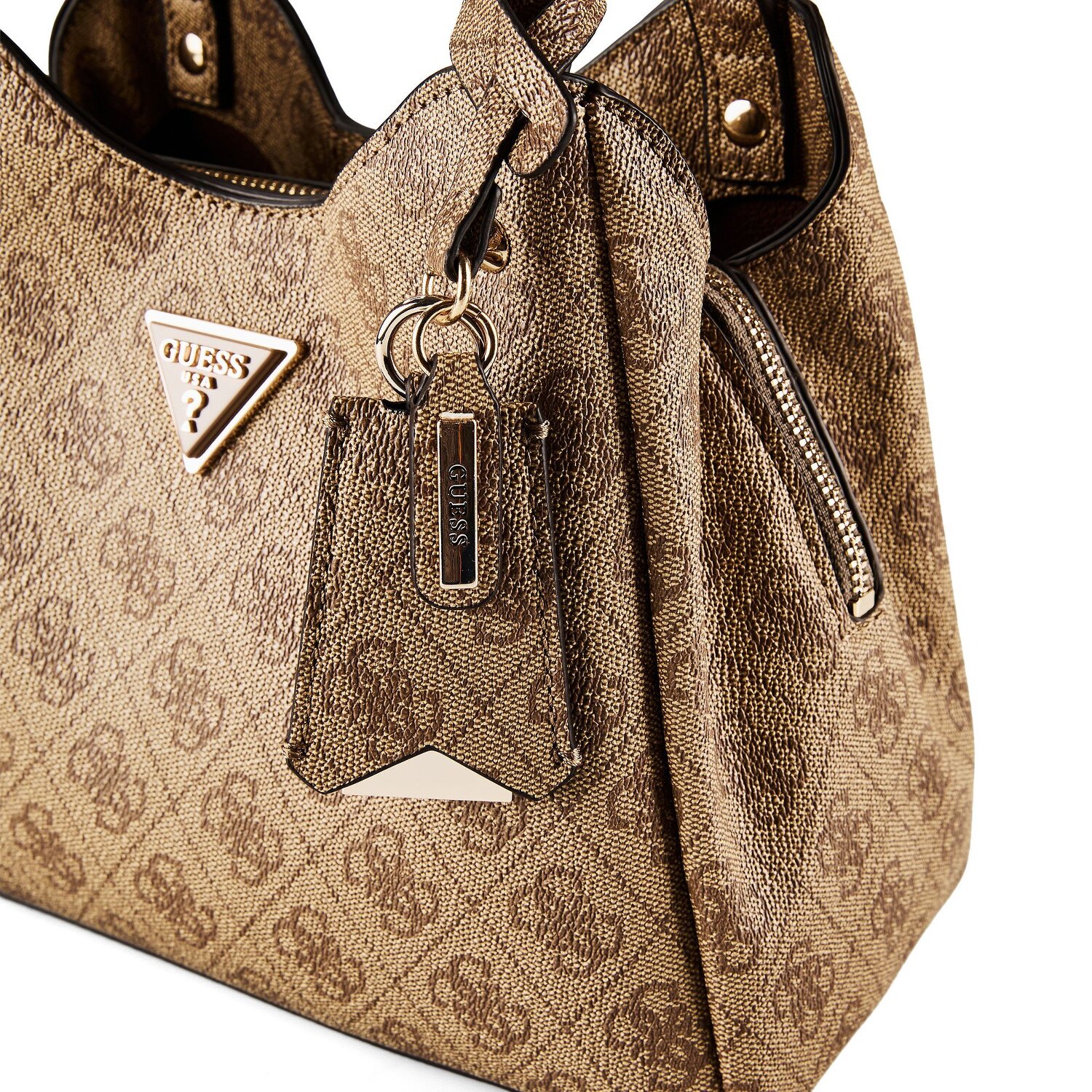 W świecie wyrazistości, ta torebka Guess Meridian II wiedzie prym dzięki swojej charakterystycznej estetyce. Zapytaj o wnętrze, które oferuje wygodną organizację z dwiema głównymi przegrodami i dodatkową przegrodą zapinaną na suwak. Dzięki wytrzymałemu materiałowi poliuretanowemu, ta torebka będzie trwałym i solidnym towarzyszem, który nie straci swojego piękna. Przyjazny dla użytkownika zamek błyskawiczny okazuje się niezwykle praktyczny, a stylowe ćwieki na spodzie dodają odrobiny blasku. Dzięki krótkiemu głównemu uchwytowi i odpinanemu, regulowanemu paskowi na ramię, ta torebka oferuje elastyczne opcje noszenia. Podaruj sobie elegancję i wszechstronność, które obiecuje ta torebka Guess Meridian II.