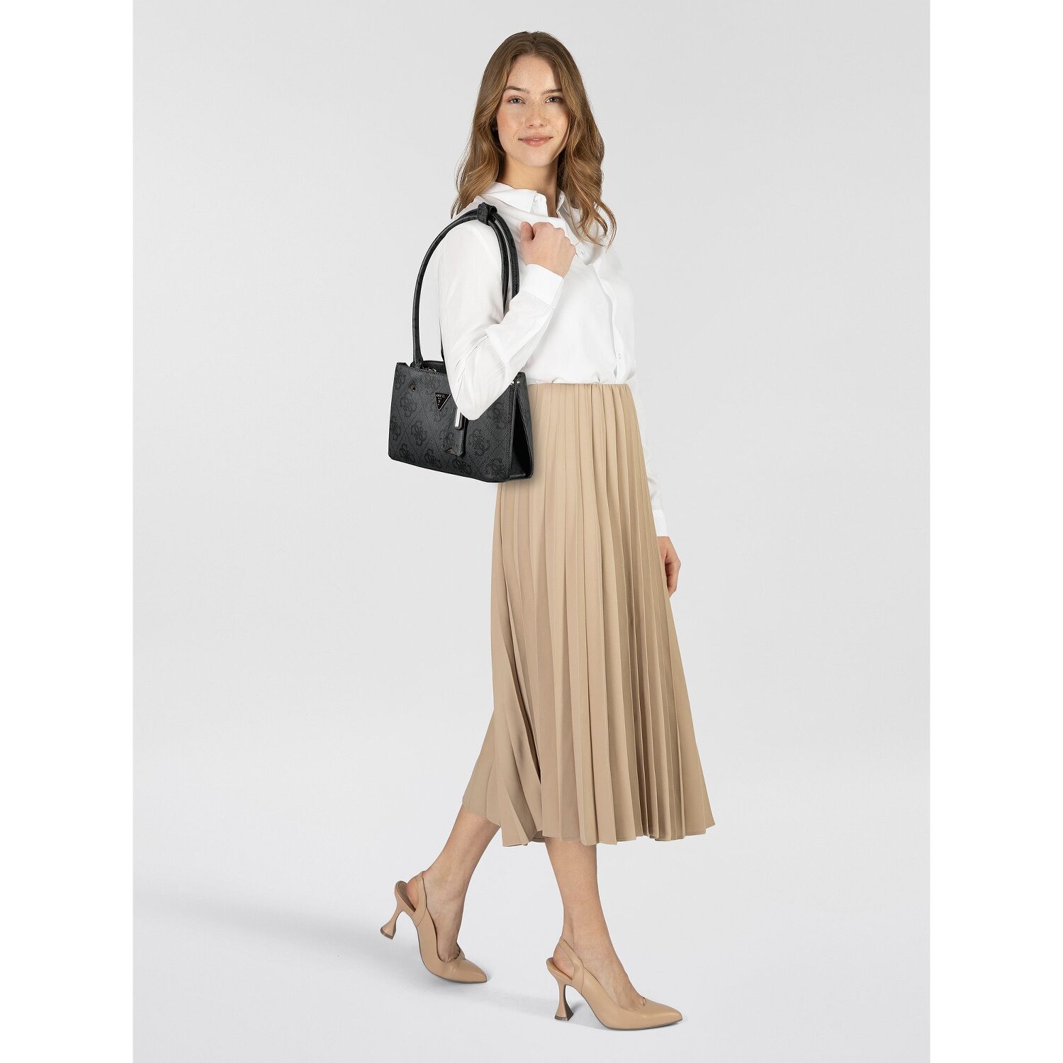 Odkryj wyrafinowany urok torebki na ramię Guess Meridian II. Stworzony z myślą o kobietach świadomych swojego stylu, ten szykowny dodatek łączy elegancję z praktycznym designem. Wnętrze jest wyposażone w praktyczne kieszenie na suwak na wszystkie niezbędne drobiazgi. Wykonana z wytrzymałego poliuretanu torba zapewnia długotrwałą wytrzymałość bez poświęcania nowoczesnego wyglądu. Dostępny zamek błyskawiczny i magnetyczne zamknięcie zapewniają bezpieczne i łatwe pakowanie przedmiotów. Dzięki średniej długości paskowi na ramię ta torba na ramię oferuje wszechstronne opcje noszenia. Spraw, by torba na ramię Guess Meridian II stała się Twoim eleganckim towarzyszem na co dzień.
