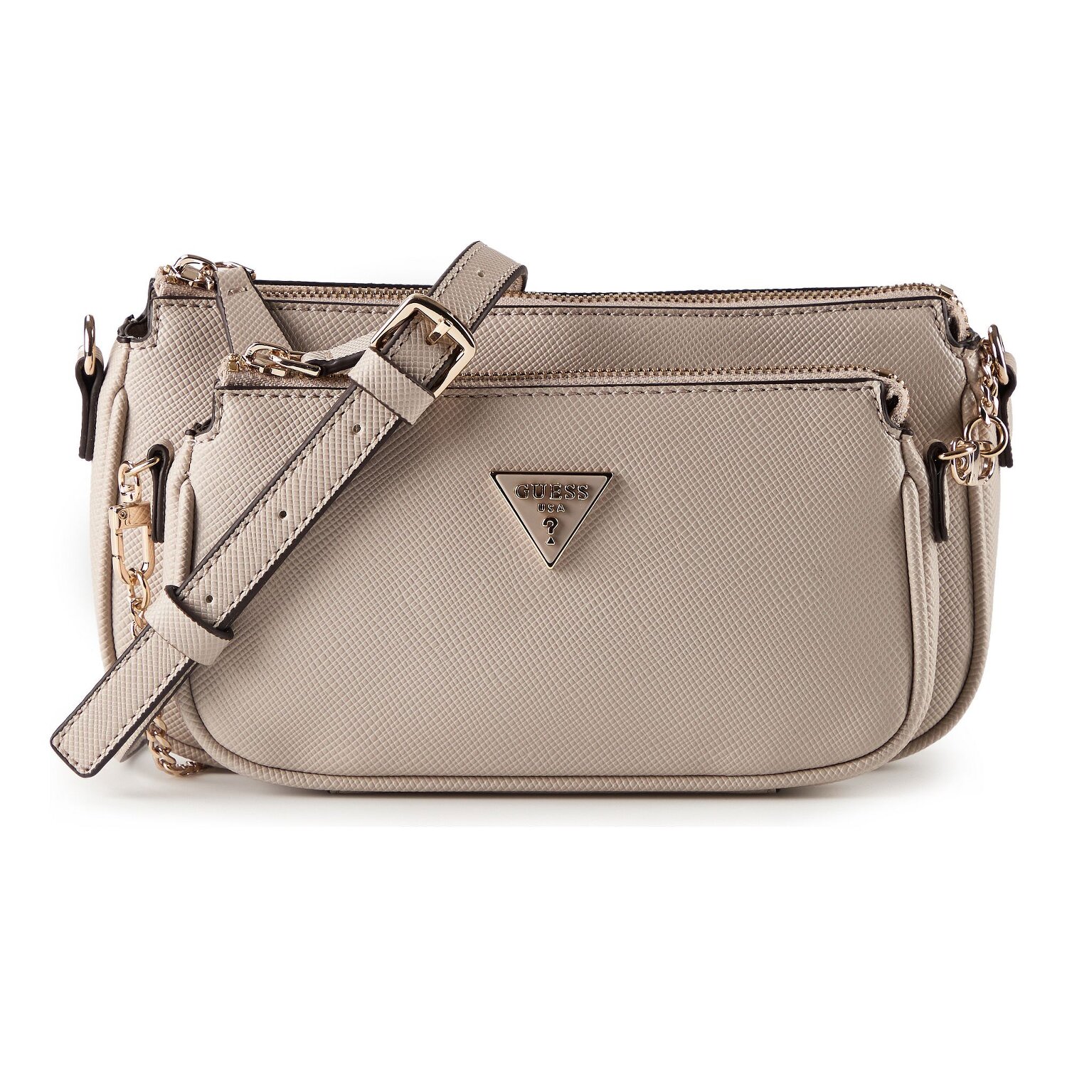 Doświadcz elegancji na nowym poziomie dzięki torbie na ramię "Noelle II" marki Guess. Ta damska torba na ramię oferuje funkcjonalność dzięki delikatnemu materiałowi poliuretanowemu, który jest trwały, a jednocześnie stylowy. Zapięcie na suwak jest nie tylko praktyczne, ale także łatwo dostępne, a dołączone kieszenie na karty kredytowe i dodatkowa kieszeń na suwak utrzymują porządek we wnętrzu. Torba posiada odpinany i regulowany pasek na ramię, który pozwala na dostosowanie opcji noszenia. Czy to jako torebka ze średniej długości głównym paskiem, czy jako modna torba na ramię - z "Noelle II" zawsze możesz wyczarować modny wygląd. Nie przegap tego niezbędnego akcesorium!