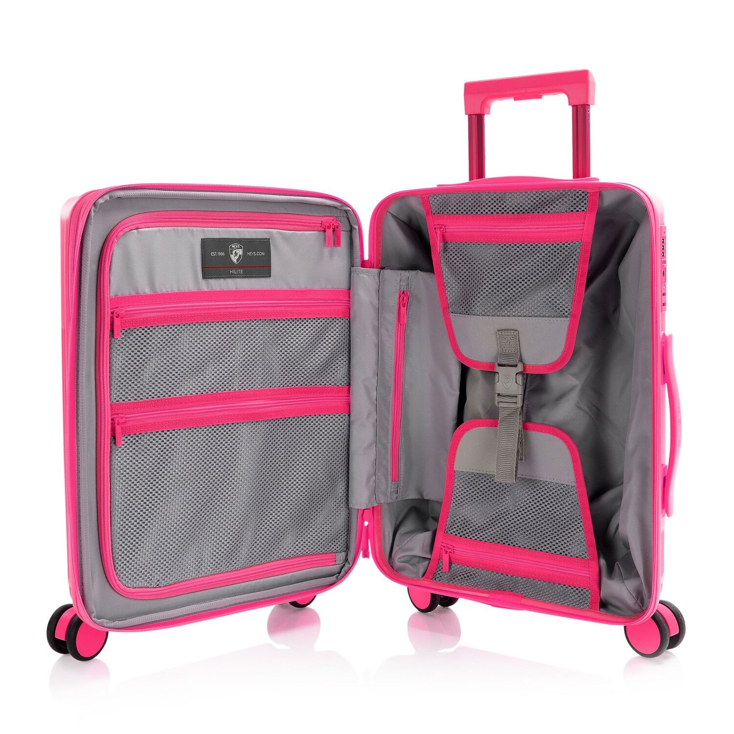 Wózek kabinowy z 4 kołami, który obiecuje precyzję pakowania: Heys HiLite. Wyposażony w takie funkcje, jak rozkładana klapa zapewniająca dodatkową objętość, przegroda na bieliznę i kieszeń z siatki, wspiera sprawny proces podróżowania. Przegroda/płyta do pakowania i praktyczna komora na zamek błyskawiczny wyznaczają nowe standardy w zakresie organizacji i przejrzystości. Nie zapominając o zamykanym uchwycie i solidnym zamku TSA, które gwarantują bezpieczeństwo podczas podróży. Uchwyt do przenoszenia zapewnia wygodną obsługę, a wytrzymały poliwęglan zapewnia trwałość. Każda podróż jest łatwa z tym wózkiem - nie wahaj się i zdobądź swojego towarzysza podróży już teraz! Dzięki rozszerzanej plisie walizkę można rozszerzyć do szerokości 26 cm.