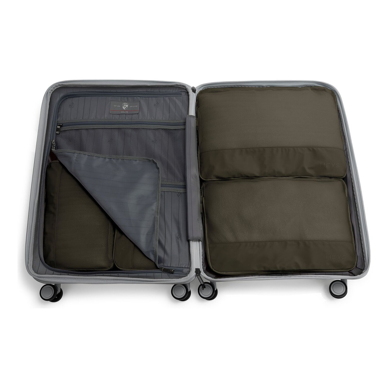 Ten zestaw sakw Heys wykonany z wytrzymałego nylonu jest idealnym towarzyszem dla świadomych stylu podróżników. Dzięki praktycznemu uchwytowi do przenoszenia jest łatwy w obsłudze, a wszechstronny zamek błyskawiczny zapewnia bezpieczne zamknięcie. Drobne detale, takie jak dyskretny napis Heys na zamkach błyskawicznych, nadają zestawowi nowoczesny, wysokiej jakości akcent i sprawiają, że organizacja bagażu jest przyjemnie prosta i wydajna. Idealny na weekendowe wycieczki lub dłuższe przygody w dowolnym miejscu na świecie. Wymiary: 30 cm x 8 cm x 20,5 cm / 33 cm x 8 cm x 23 cm / 38 cm x 8 cm x 29 cm / 40,5 cm x 8 cm x 30 cm / 44,5 cm x 8 cm x 32 cm - Waga: 0,09 kg / 0,1 kg / 0,12 kg / 0,14 kg / 0,15 kg