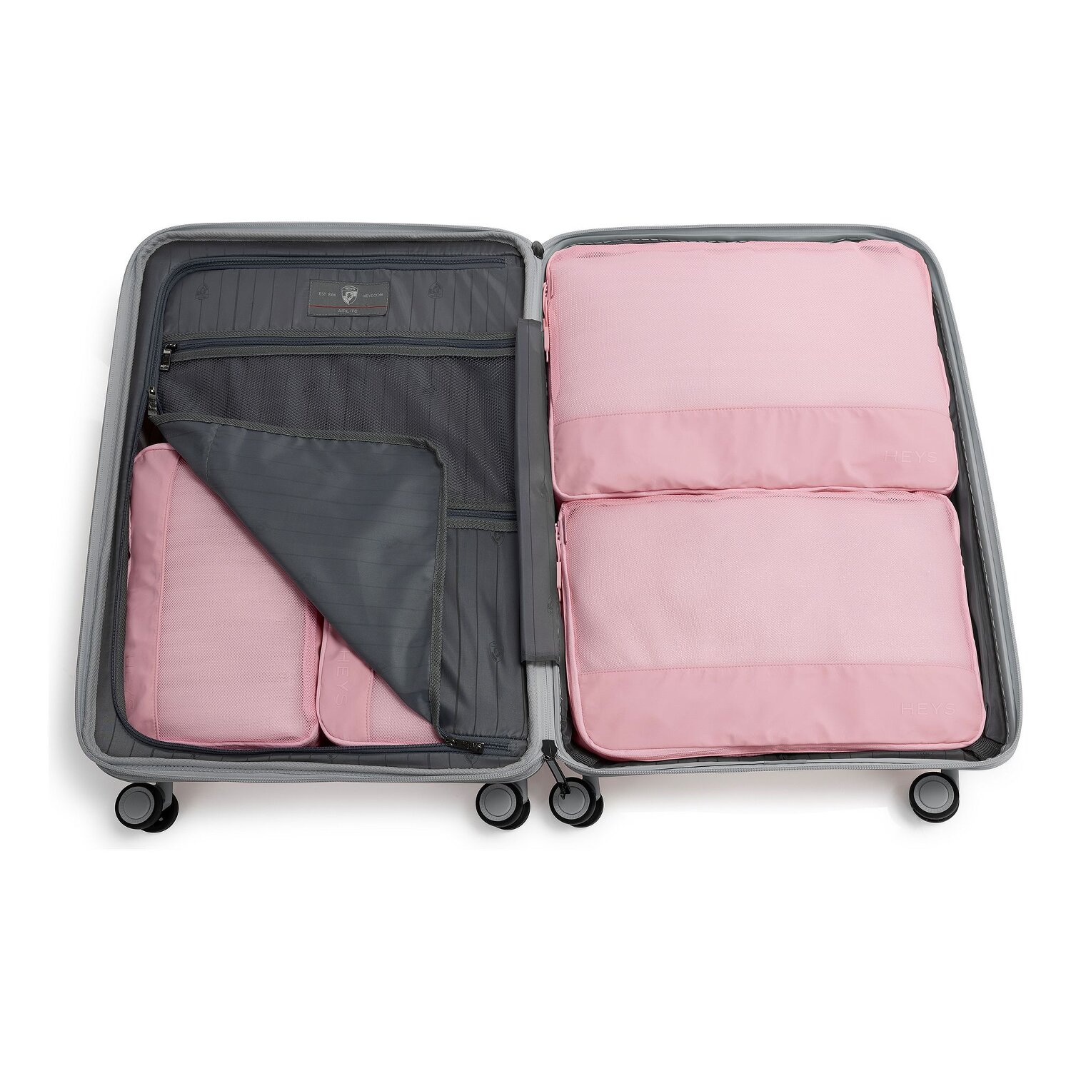 Ten zestaw sakw Heys wykonany z wytrzymałego nylonu jest idealnym towarzyszem dla świadomych stylu podróżników. Dzięki praktycznemu uchwytowi do przenoszenia jest łatwy w obsłudze, a wszechstronny zamek błyskawiczny zapewnia bezpieczne zamknięcie. Drobne detale, takie jak dyskretny napis Heys na zamkach błyskawicznych, nadają zestawowi nowoczesny, wysokiej jakości akcent i sprawiają, że organizacja bagażu jest przyjemnie prosta i wydajna. Idealny na weekendowe wycieczki lub dłuższe przygody w dowolnym miejscu na świecie. Wymiary: 30 cm x 8 cm x 20,5 cm / 33 cm x 8 cm x 23 cm / 38 cm x 8 cm x 29 cm / 40,5 cm x 8 cm x 30 cm / 44,5 cm x 8 cm x 32 cm - Waga: 0,09 kg / 0,1 kg / 0,12 kg / 0,14 kg / 0,15 kg