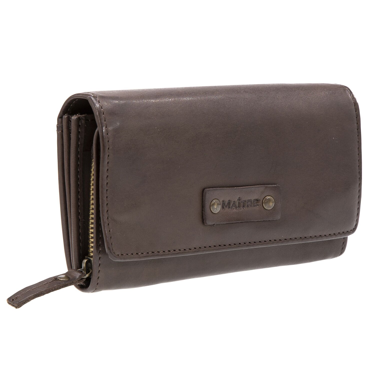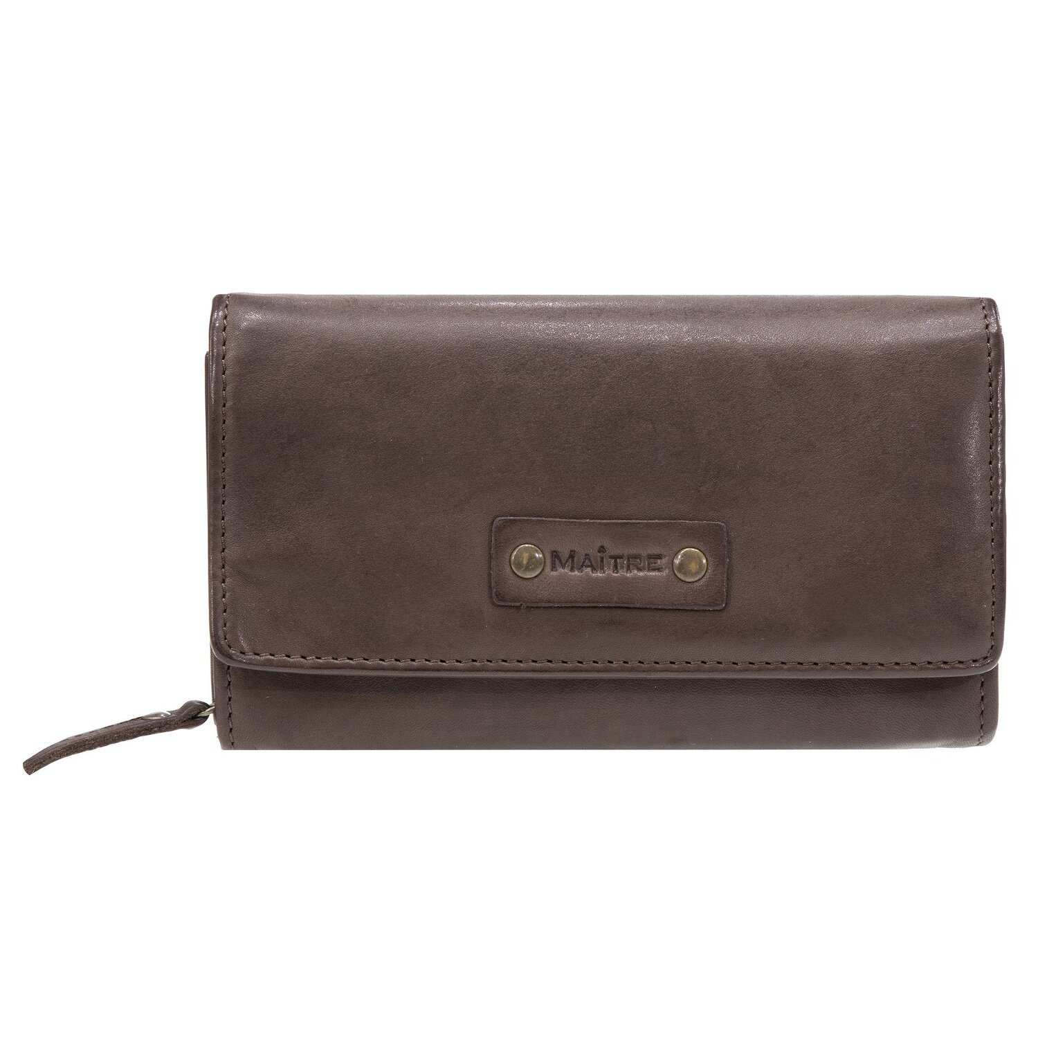 Elegancki portfel damski od Maître wykonany z elastycznej skóry. Z licznymi przegródkami na karty, dowód osobisty, banknoty i monety.