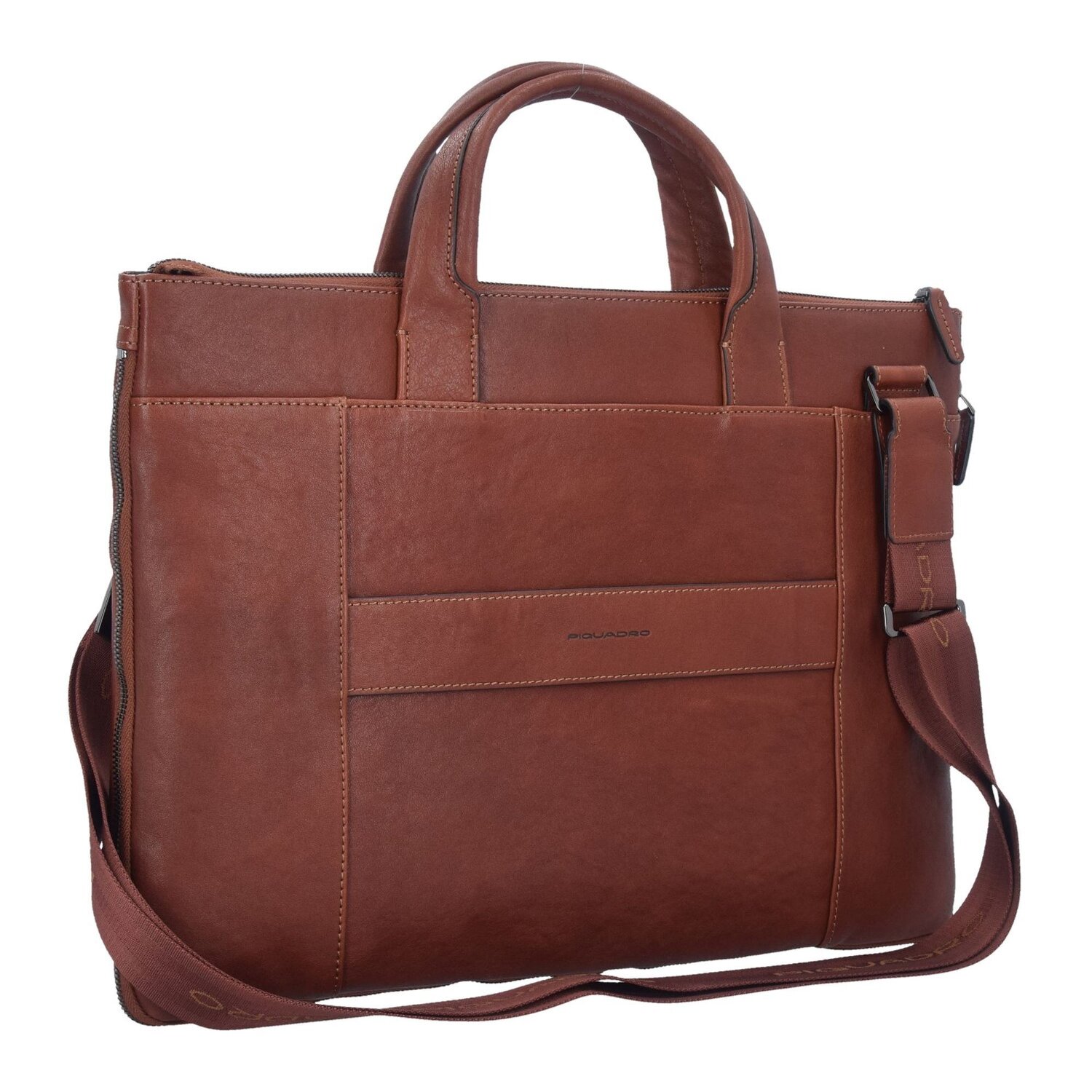 Piquadro Czarny Kwadratowy Briefcase Skórzany 42 cm Komora na laptopa