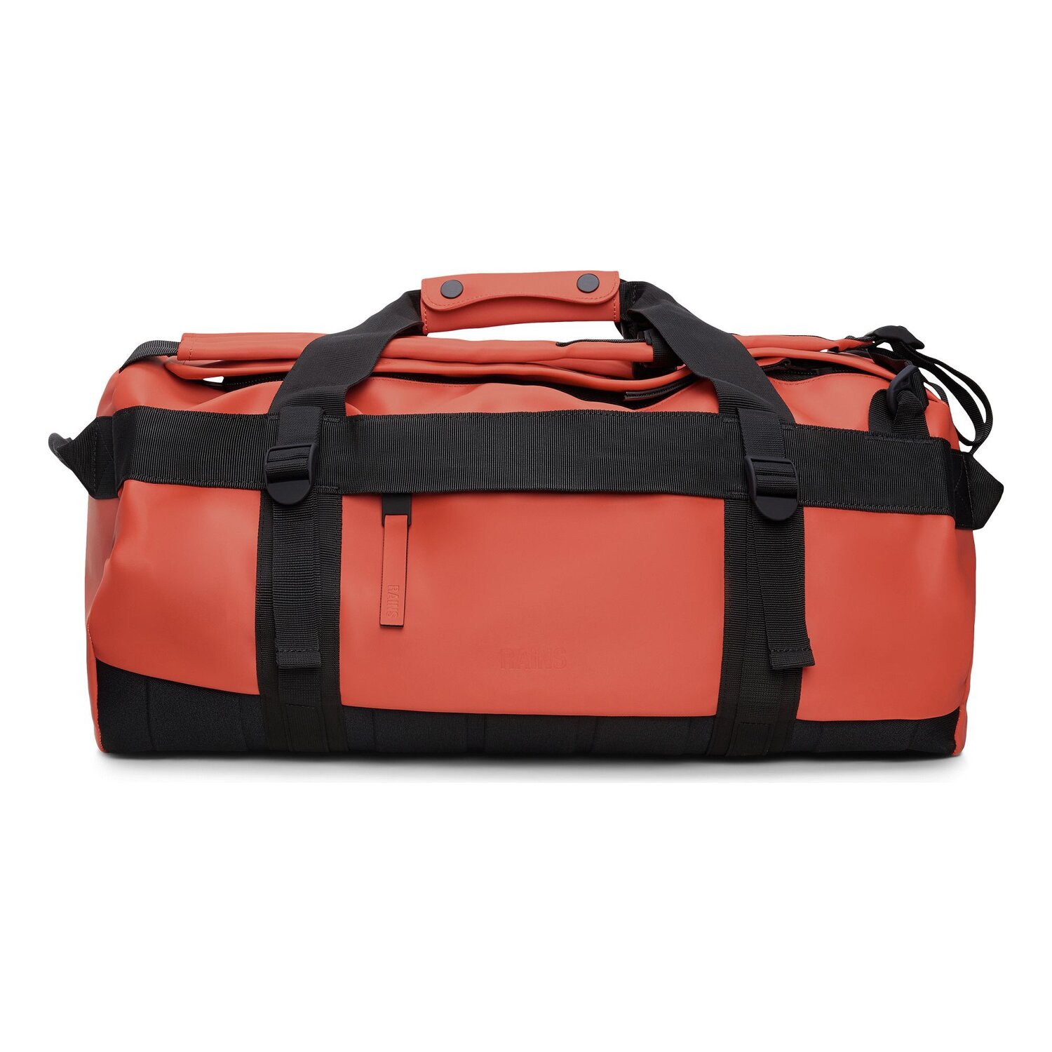 Przestronna torba podróżna marki Rains jest wykonana z wodoodpornego materiału, ma pudełkowatą sylwetkę i sportowe detale. Sportowy wygląd uzupełniają cztery klamry przymocowane do taśmy. W zależności od potrzeb, torba podróżna może być noszona jako torba lub jako praktyczny plecak. Idealny towarzysz podróży lub uprawiania sportu.