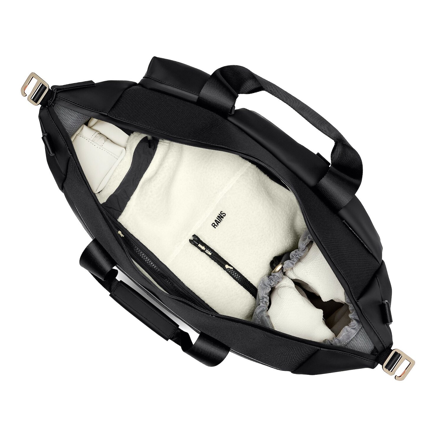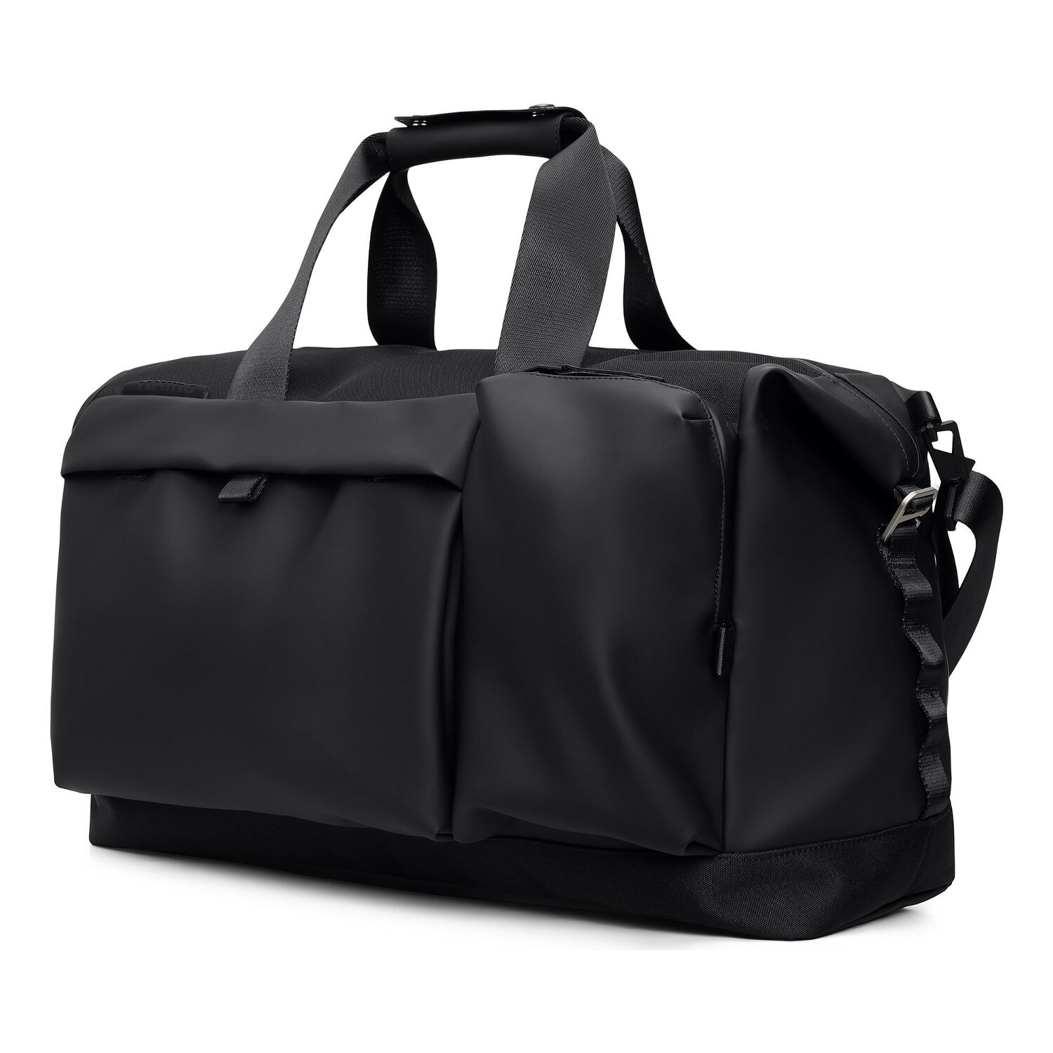 Torba podróżna Weekender firmy Rains wyznacza nowe standardy funkcjonalnego i atrakcyjnego bagażu. Nieprzezroczysty, wodoodporny materiał poliuretanowy chroni wnętrze przed wilgocią i brudem. Wewnątrz posiada przegrodę na zamek błyskawiczny i ożywia Twoje zamiłowanie do organizacji. Wycenione kieszenie wewnątrz i specjalna przegroda na butelki z wodą ułatwiają organizację przestrzeni. Każdy szczegół emanuje wyrafinowaniem. Niezależnie od tego, czy jest to weekendowy wypad, czy trening, torba Weekender jest idealnym towarzyszem. Przyjdź i doświadcz najwyższej funkcjonalności i świętuj styl podczas podróży z Rains!