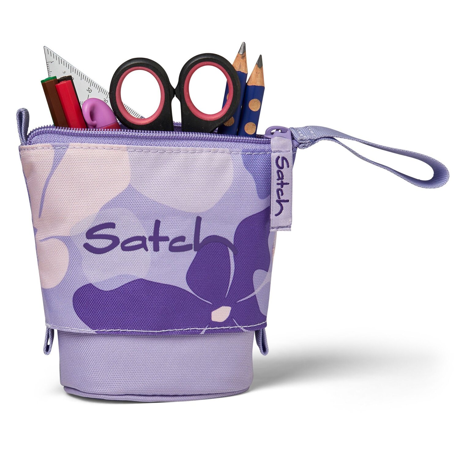 Solidny piórnik od satcha z 3 wewnętrznymi przegródkami i tajną przegródką. Łatwy dostęp do długopisów dzięki funkcji zsuwania.