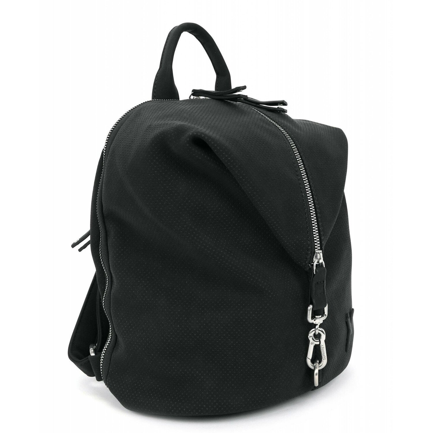 Stylowy i praktyczny plecak miejski marki Suri Frey wykonany z miękkiego perforowanego materiału o wyglądzie skóry z zamkiem błyskawicznym i karabinkiem. Posiada przejrzyście rozmieszczoną komorę główną oraz inne przegródki i kieszenie, dzięki czemu oferuje optymalne warunki do schowania najważniejszych rzeczy. Modny codzienny towarzysz w niecodziennym designie.