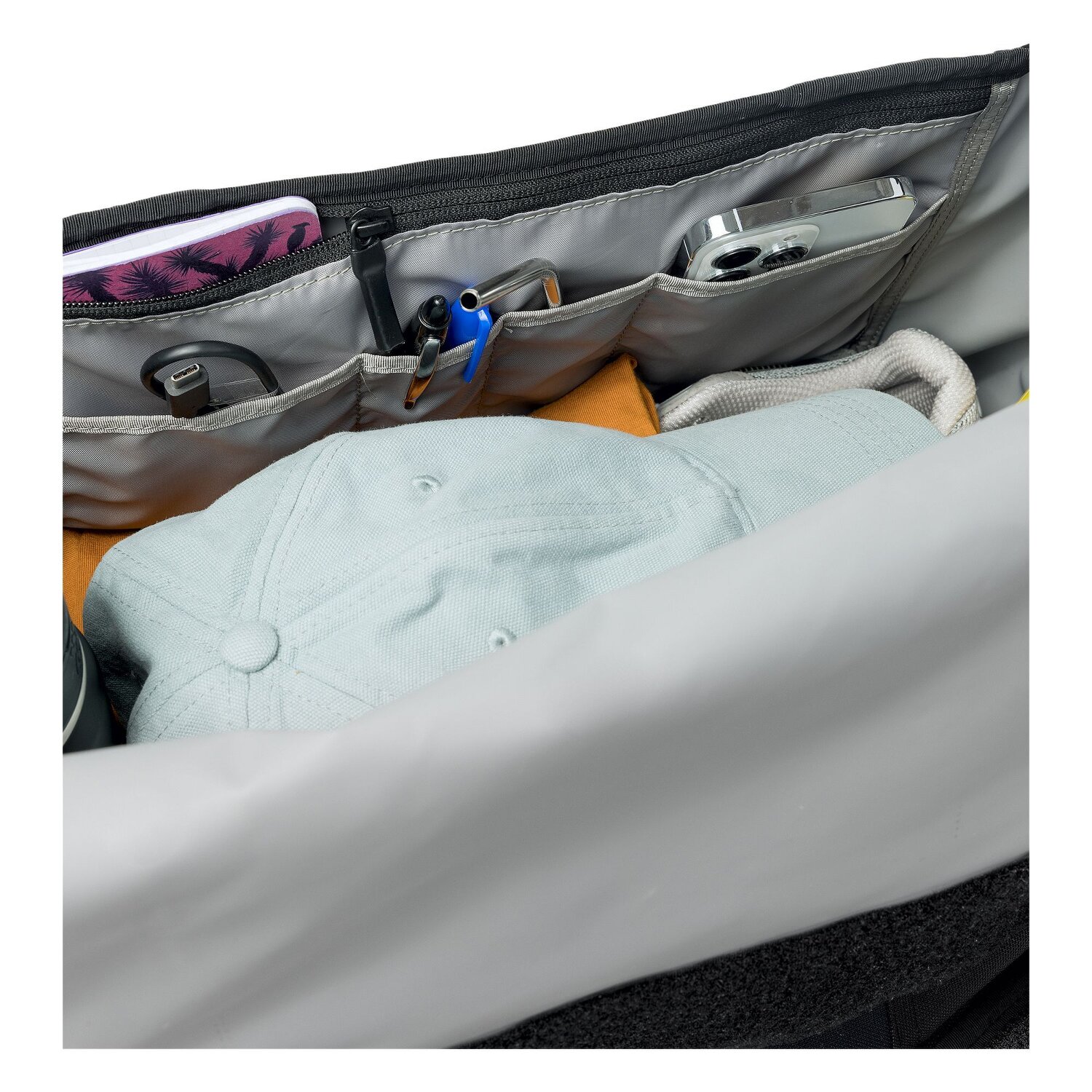 - Sprzęt: Z kieszonką na telefon, Kieszeń w środku, Kieszeń siatkowa, Kieszeń na zewnątrz, Kieszeń na suwak