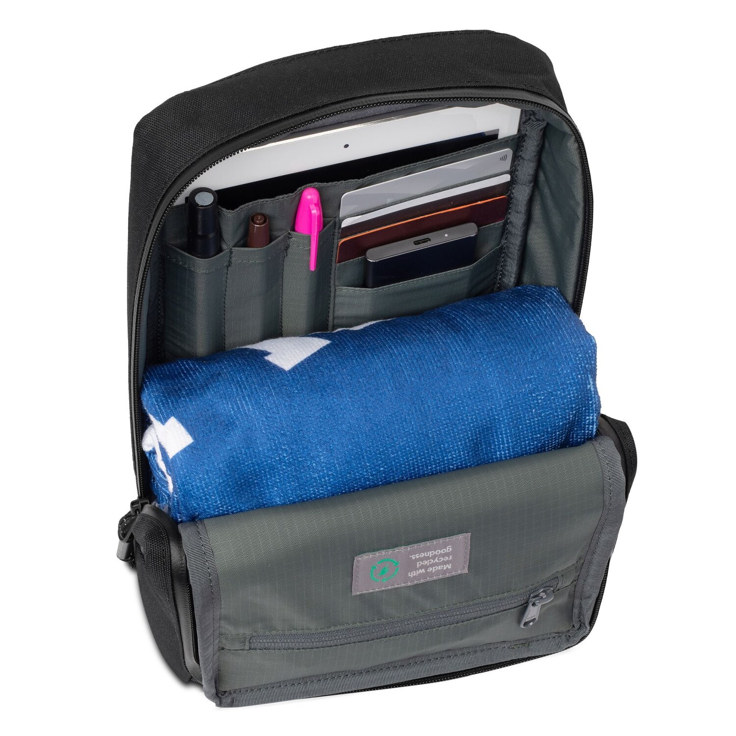 - Sprzęt: Szczeliny na karty kredytowe, Kieszeń w środku, Kieszeń na zewnątrz, Kieszeń na suwak