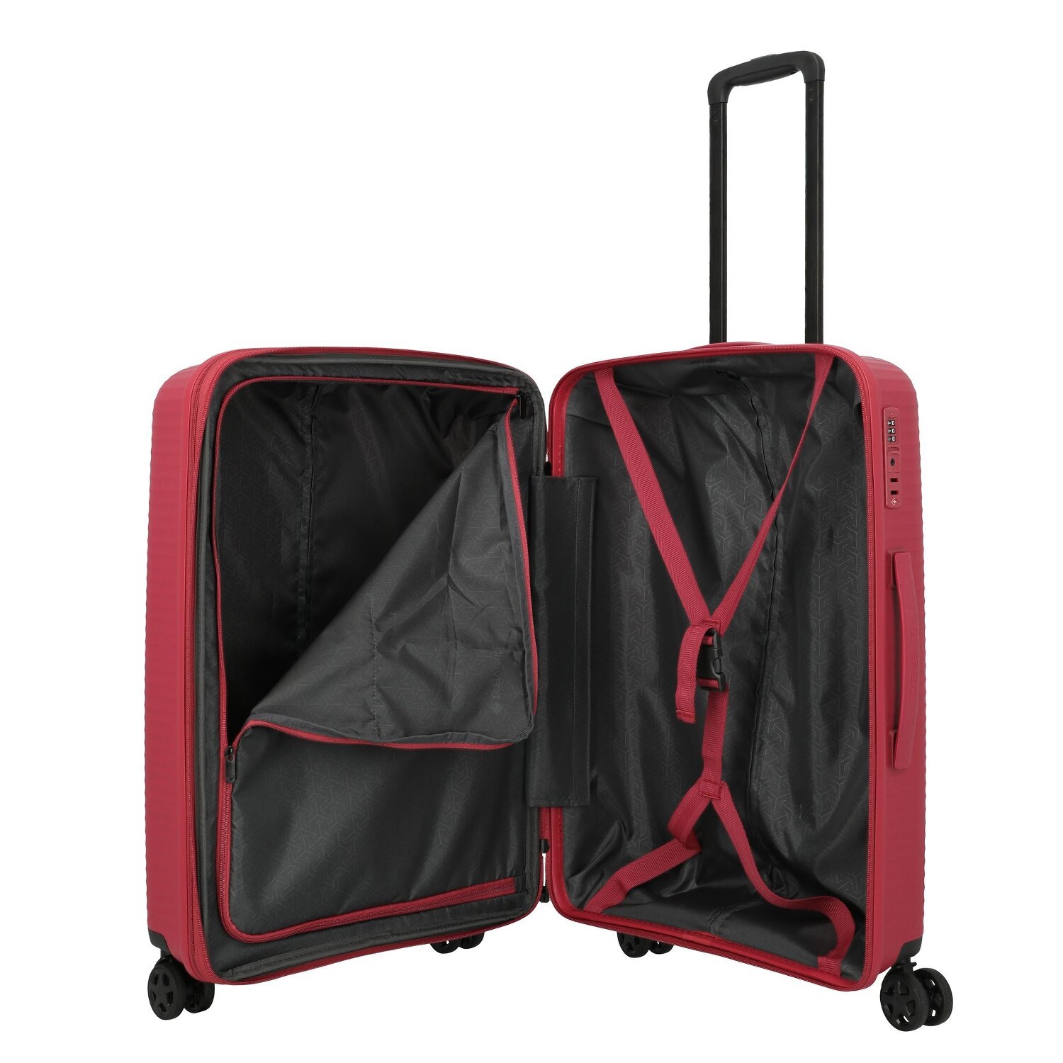 - Sprzęt: Z rączką teleskopową wysuwaną, Rozciągniecia fałdy, Przedział na pranie, Pasy wewnętrzne mocujące, Kieszeń na suwak
